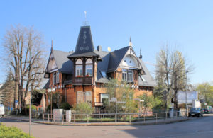 - markant an einer Straßenkreuzung stehender Villenbau