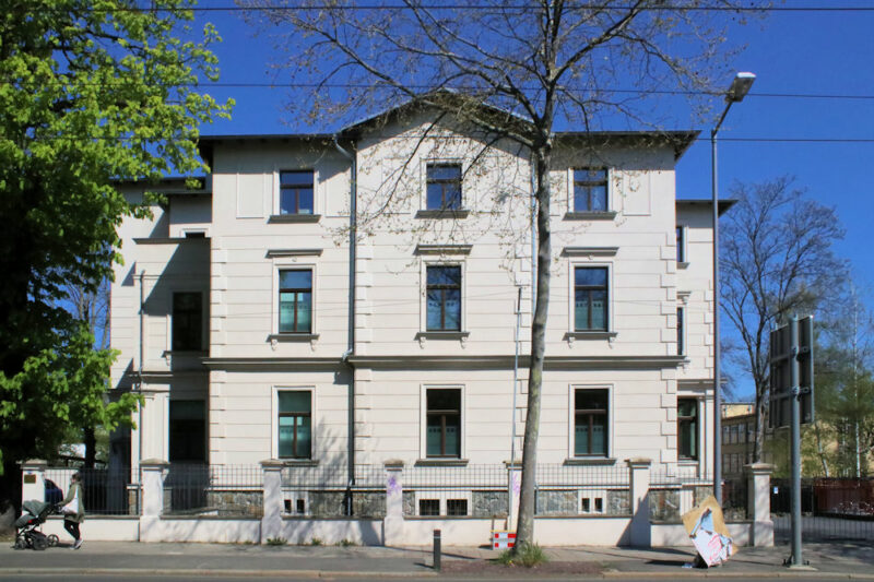 Die Villa Hillig in Lindenau steht zwischen dem Felsenkeller und der Klingerbrücke in offener Bebauung.