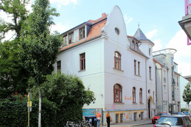 Die Villa Kindertraum in Lindenau steht zwischen dem Karl-Heine-Platz und der Lützner Straße in offener Blockrandbebauung.