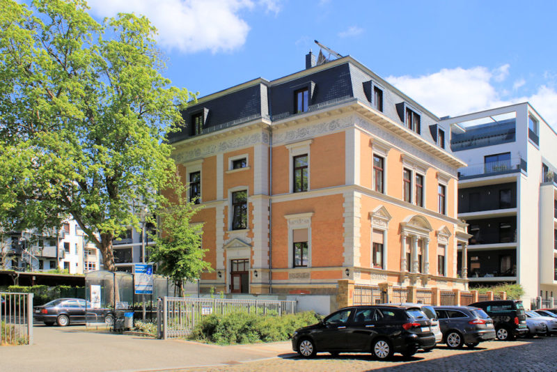 Die Villa Langbein in Leipzig steht im Bachviertel nahe der Lutherkirche in offener Bebauung.