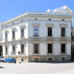 - Putzfassade, übereck gestellte Front, Turm zum Rosental, Fensterverdachungen und -rahmungen, Gesimse, Turm mit Standerker