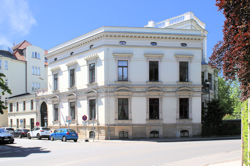 Die Villa Lortzingstraße 19 steht in offener Villenbebauung am südlichen Rand des Rosentals nahe dem Zoo Leipzig.