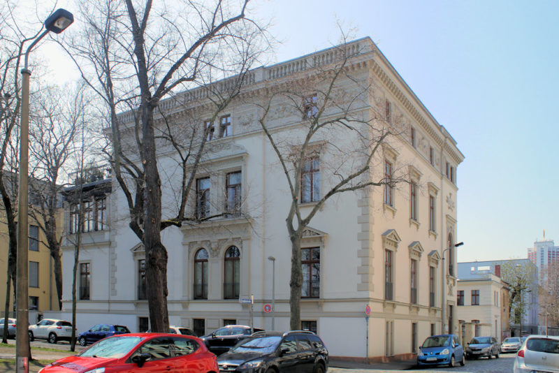 Die Villa Weber steht am Marienplatz in Leipzig in offener Blockrandbebauung.