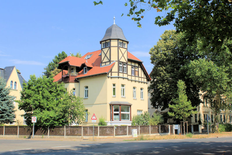 Die Villa Naunhofer Straße 33 in Stötteritz steht in offener Villenbebauung nahe dem Völkerschlachtdenkmal.