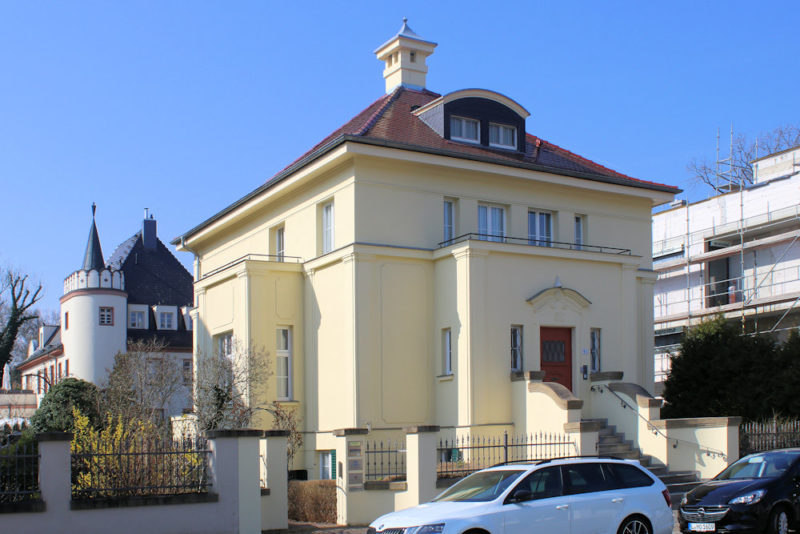Die Villa Poetenweg 41 in Gohlis steht in offener Villenbebauung nahe dem Gohliser Schlösschen.