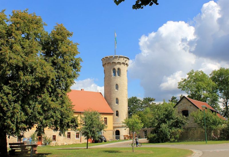 - runder Turm, einem mittelalterlichen Bergfried nachempfunden