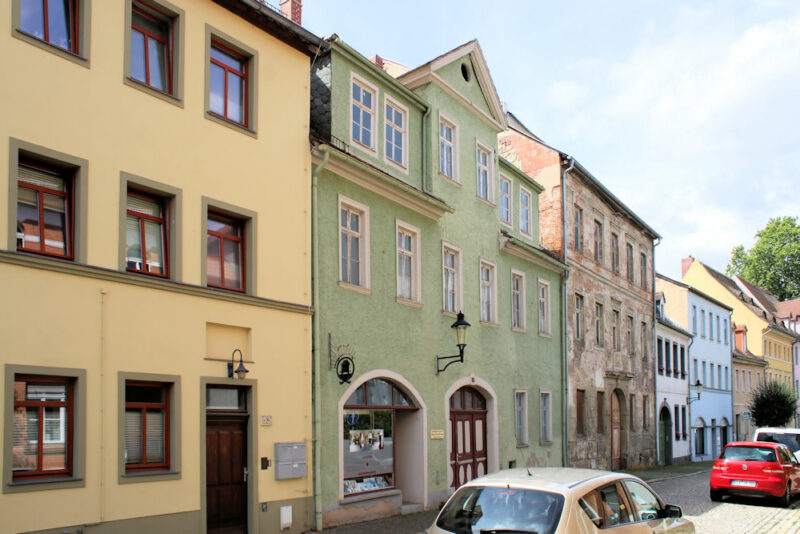 Das Wohnhaus Wenzelsstraße 52 steht nahe der Stadtkirche St. Wenzel in Naumburg in geschlossener Bebauung.