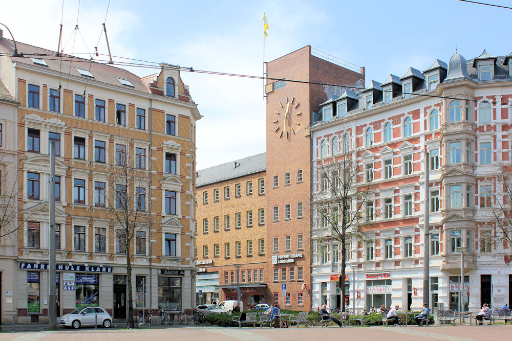 Das Westbad in Lindenau steht am Lindenauer Markt in geschlossener Blockrandbebauung.