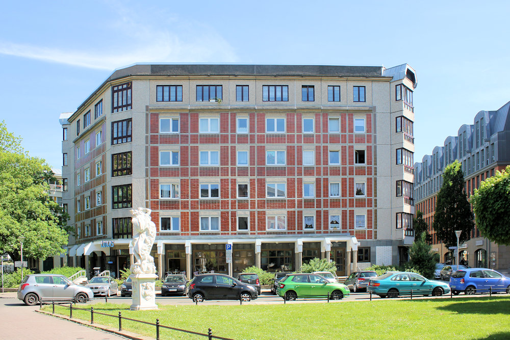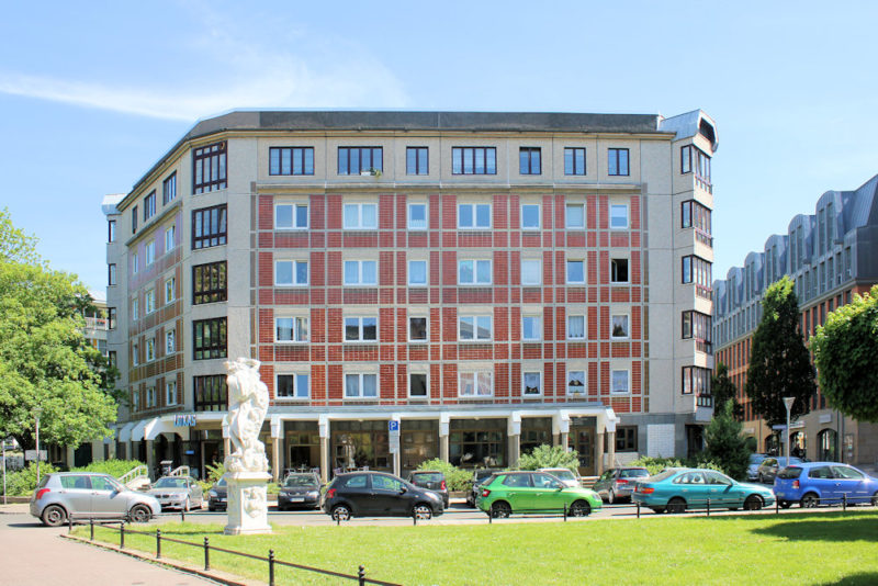 Die Wohnbebauung Dorotheenplatz in Leipzig ist in einem guten Zustand.