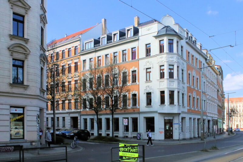 Das Wohnhaus Breite Straße 16 in Reudnitz steht in geschlossener Blockrandbebauung nahe dem Ramdohrschen Park.