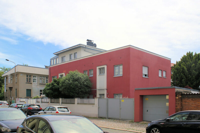 Das Wohnhaus Eisenacher Straße 1a in Gohlis steht in offener Bebauung nahe der Friedenskirche.