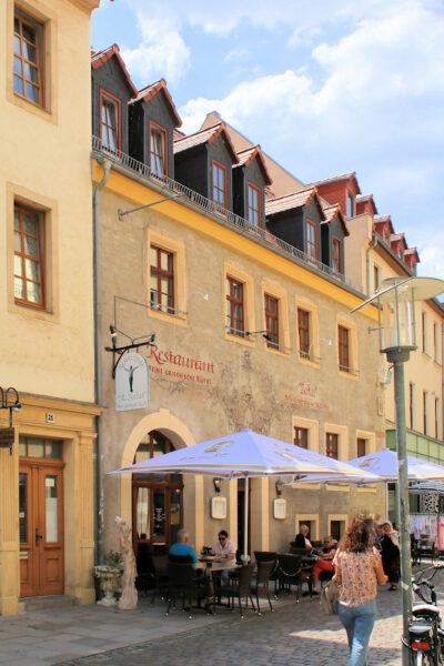 Das Wohnhaus Gotthardstraße 28 in Merseburg steht zwischen dem Vorderen Gotthardteich und der Stadtkirche in Blockrandbebauung.