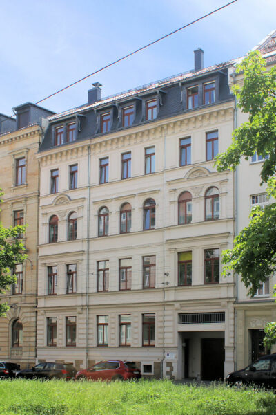Das Wohnhaus Menckestraße 15 in Gohlis steht in geschlossener Bebauung zwischen Gohliser Schlösschen und der Friedenskirche.