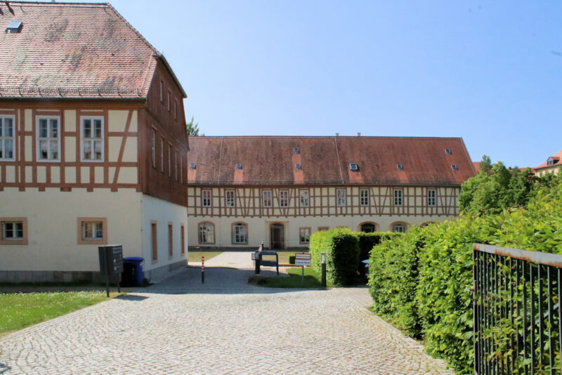 Die Gebäude der ehem. Zeugmanufaktur in Zeitz stehen hinter dem Albrechtschen Palais, nördlich dem Schloss Moritzburg.