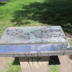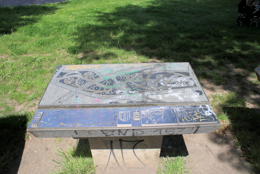 - Die erhaltenen Tafeln des Blindenparks im Rosental in Leipzig sind in einem schadhaften Zustand.