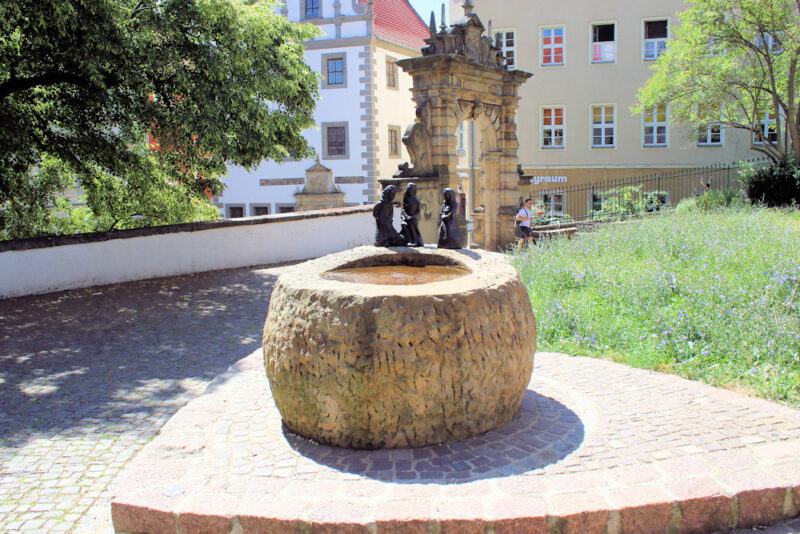 Der Brunnen steht hinter der Frauenkirche in Meißen.