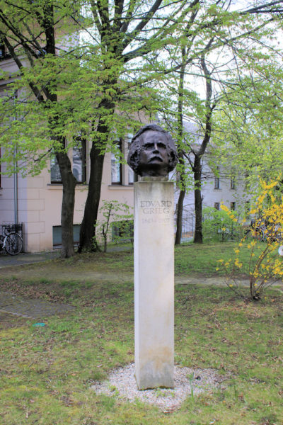 Die Büste für Edvard Grieg befindet sich im Garten des Verlagshauses Edition Peters im Seeburgviertel in Leipzig.