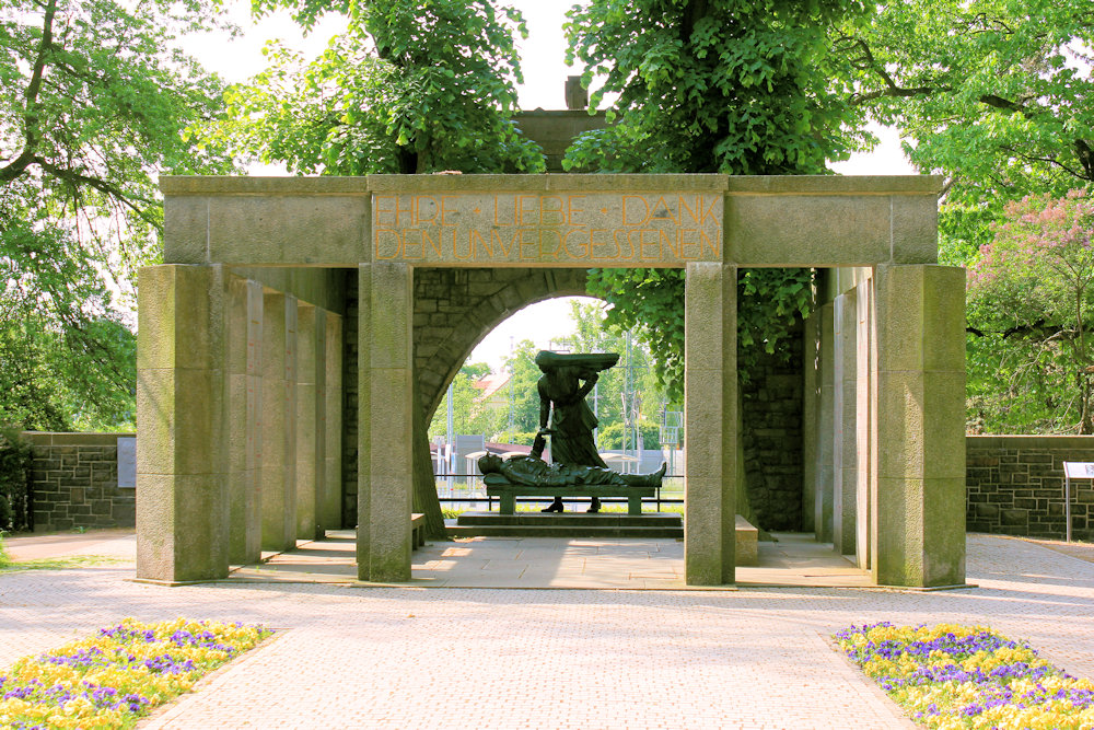 Das Ehrenmal für die Gefallenen des 1. Weltkriegs befindet sich auf dem Alten Friedhof gegenüber dem Bahnhof.