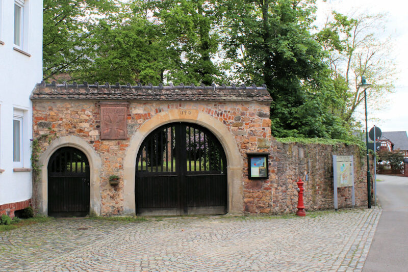 Das Eingangsportal zum Kirchhof an der Kunigundenkirche befindet sich südöstlich der Altstadt von Borna.