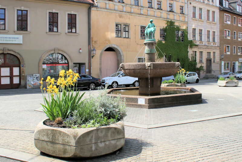Der Eselsbrunnen steht auf dem Alten Markt in Halle (Saale).