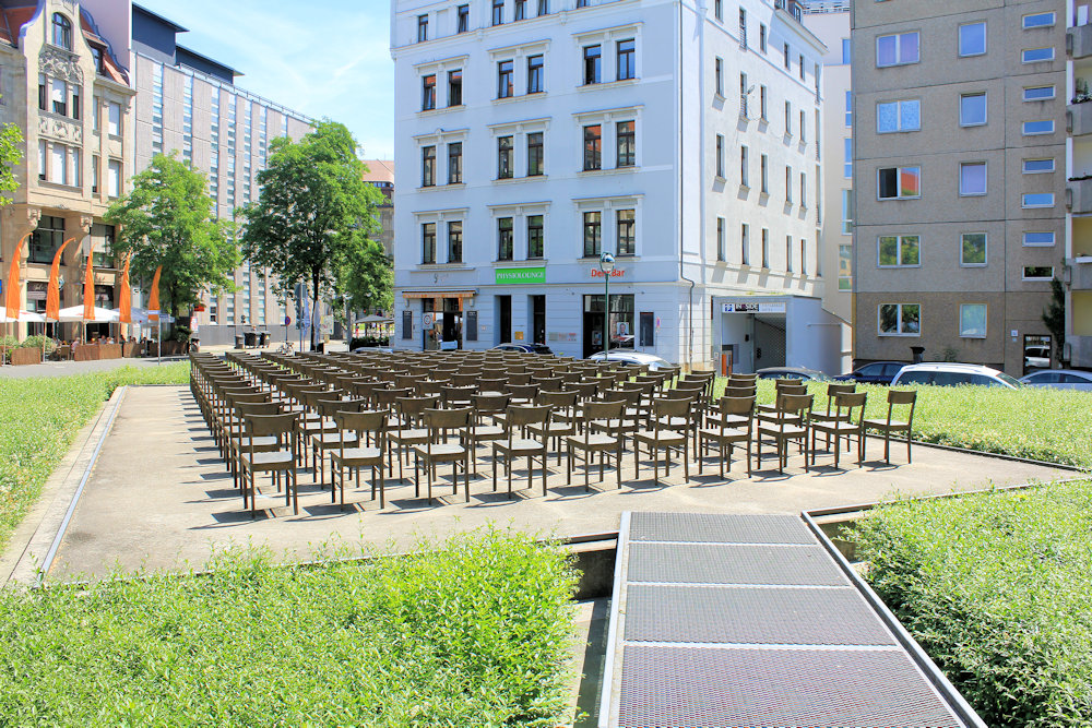 Der Gedenkort für die Große Gemeindesynagoge befindet sich auf dem Standort der Synagoge in Leipzig.