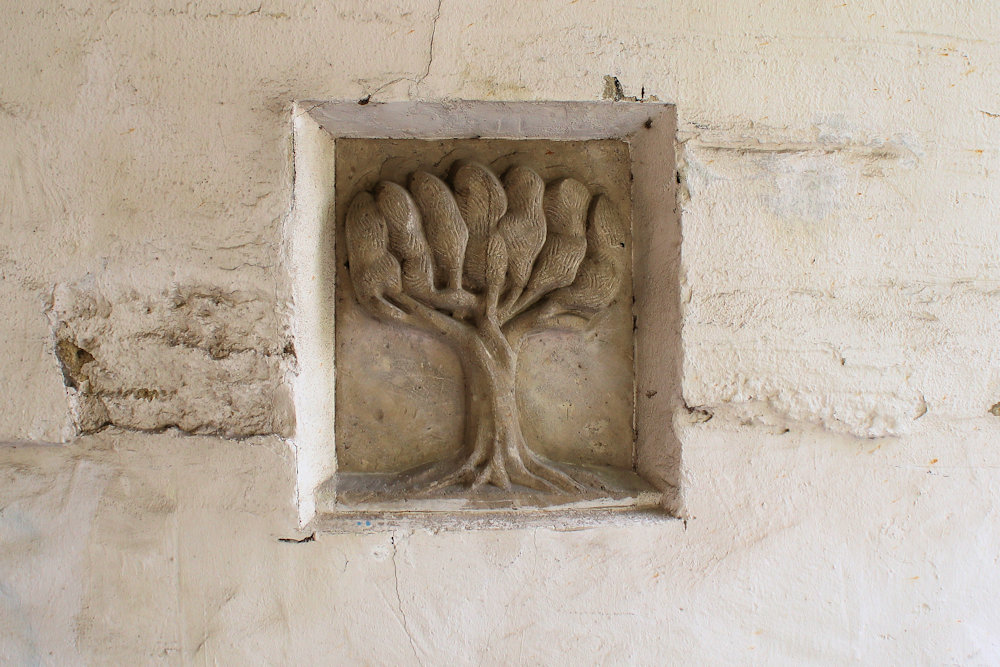 - Rechtecktafel mit Reliefdarstellung, quadratische Tafel mit Baum mit 7 Ästen
