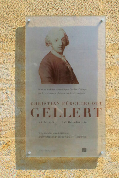 Die Gedenktafel für Christian Fürchtegott Gellert in Leipzig kann besichtigt werden.