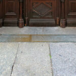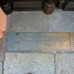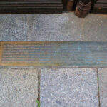- in den Boden eingelassene, zweiteilige Rechtecktafel mit erhabener Inschrift