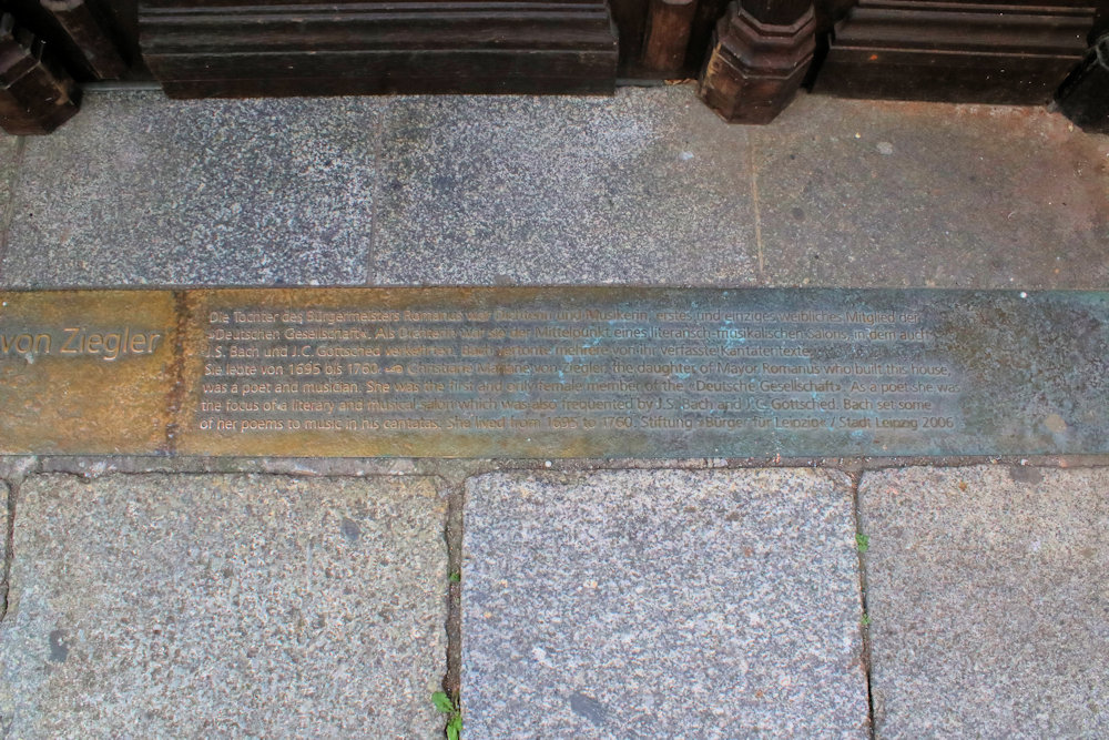 - Die Gedenktafel für Christiana Mariana von Ziegler in Leipzig ist eine Neuschöpfung.