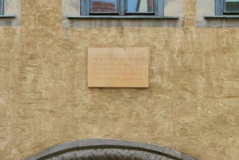 - Daniel Friedrich / Schleiermacher / Professor der Theologie und / Philosophie Lehrer an den / Universitäten Halle u. Berlin / wohnte hier von 1804 bis 1807