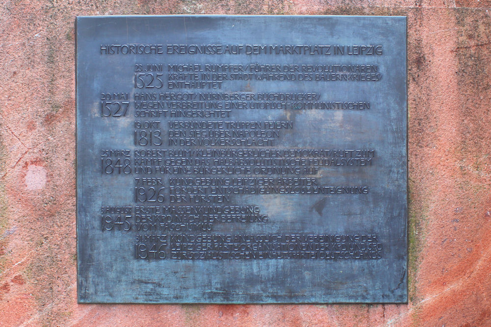 Gedenktafel Historische „Ereignisse auf dem Marktplatz“ in Leipzig