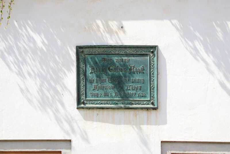 - Hier wohnte / König Gustav Adolf / die letzten Tage vor seinem / Heldentode bei Lützen / vom 2. Bis 5. November 1632