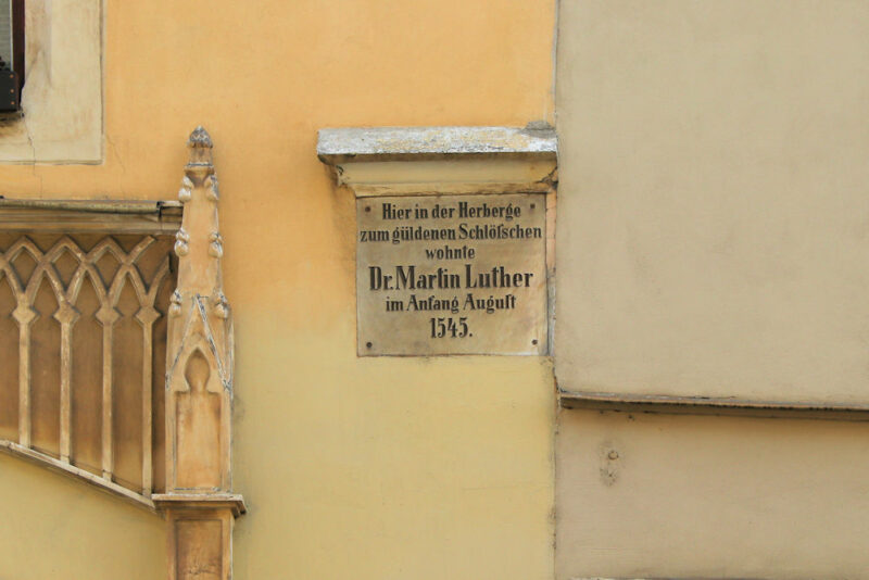 - Hier in der Herberge / zum güldenen Schlößchen / wohnte / Dr. Martin Luther / im Anfang August / 1545