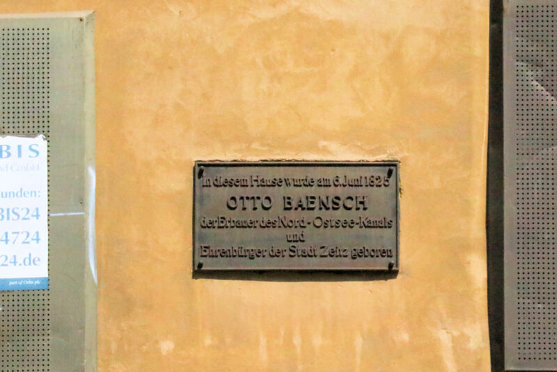 - In diesem Haus wurde am 6. Juni 1825 / Otto Baensch / der Erbauer des Nord-Ostsee-Kanals / und / Ehrenbürger der Stadt Zeitz geboren