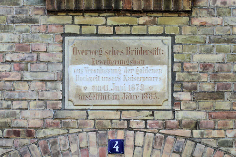 - Overweg`sches Brüderstift: / Erweiterungsbau / aus Veranlassung der goldenen / Hochzeit unsers Kaiserpaares / * am 11. Juni 1879 * / ausgeführt im Jahre 1883.