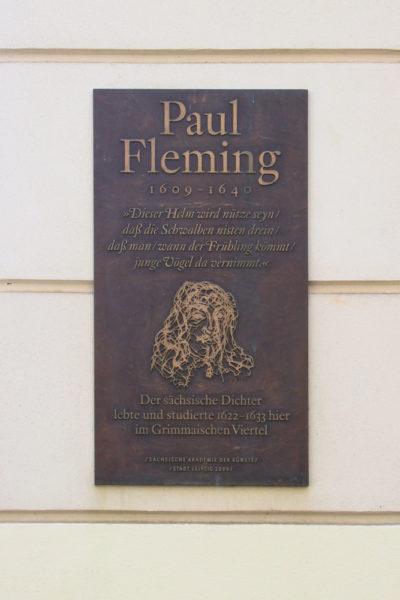 - Die Gedenktafel für Paul Fleming in Leipzig ist eine Neuschöpfung.
