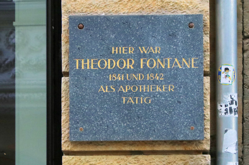 - Hier war / Theodor Fontane / 1841 und 1842 / als Apotheker tätig