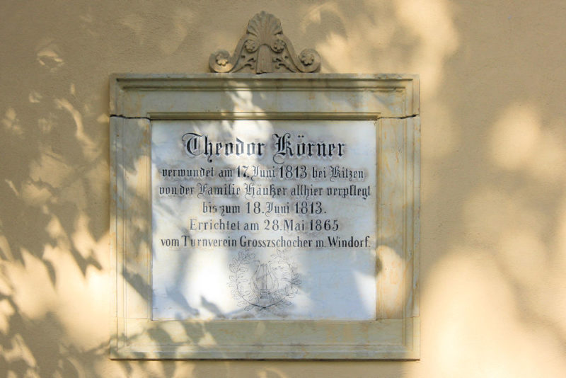 - Die Gedenktafel für Theodor Körner in Großzschocher kann besichtigt werden.