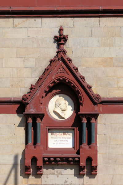 - Die Gedenktafel für Wilhelm Weber an der Hauptpost in Wittenberg kann besichtigt werden.