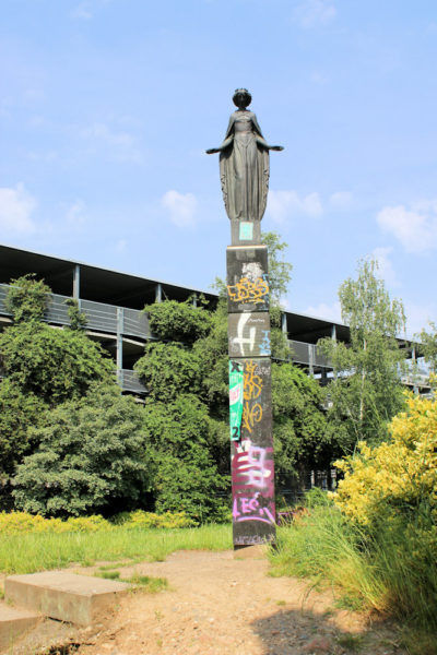 Der Gießerstele mit St. Barbara befindet sich auf dem Gelände des Stadtteilparks Plagwitz nahe der Gießerstraße.