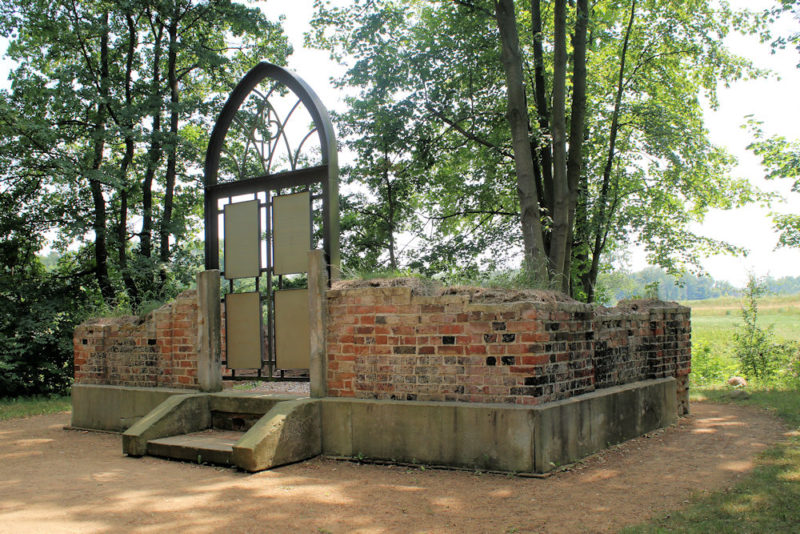 - einst kleine Kapelle, bis auf Reste der Grundmauern zerstört, modernes Eingangsgitter, innen Reste von Grabplatten