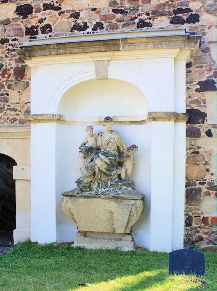 Das Grabmal der Christine Friederike Baronin auf Klitzschen steht an der Westseite der Kirche.