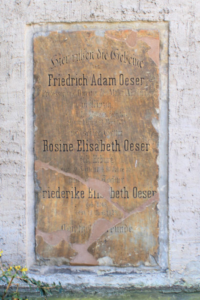 - Die Grabplatte der Familie Oeser in Leipzig kann besichtigt werden.