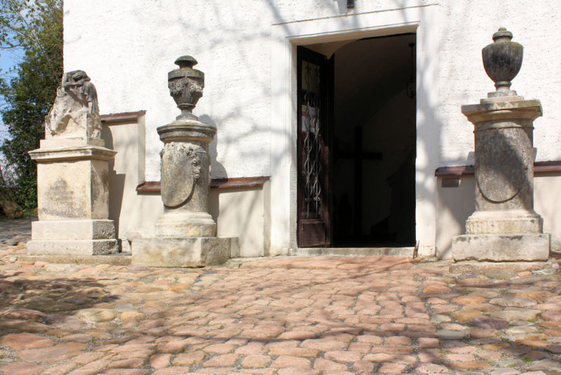 Die 3 Grabsteine auf dem Friedhof Panitzsch stehen am Zugang zur Kirche.