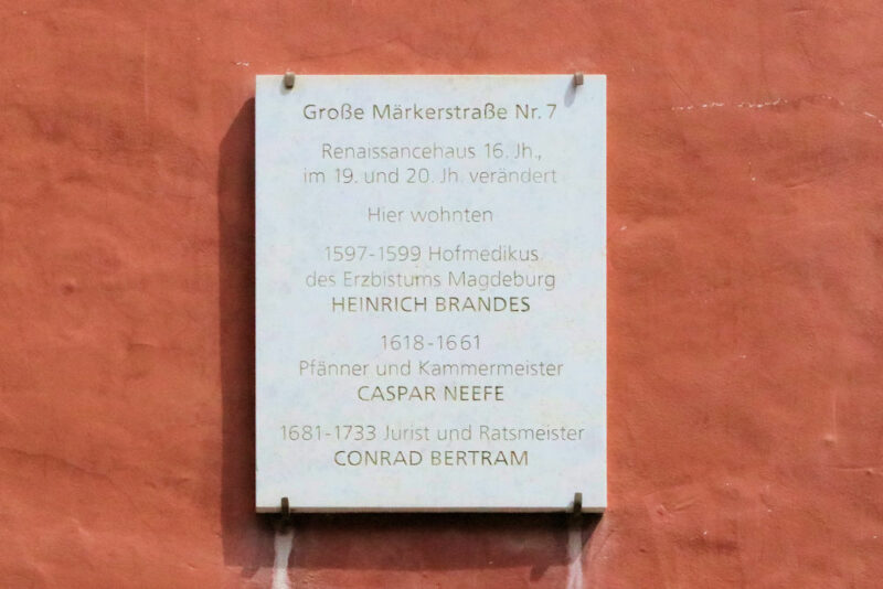 Hier wohnten: / 1597 – 1599 Hofmedikus / des Erzbistums Magdeburg / Heinrich Brandes