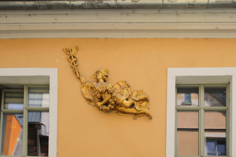 Das Hauszeichen befindet sich in der Großen Wenzelsstraße nahe der Stadtkirche St. Wenzel in Naumburg.