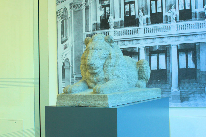 Die Löwenplastik befindet sich im Foyer des Neuen Augusteums der Universität Leipzig am Augustusplatzes.