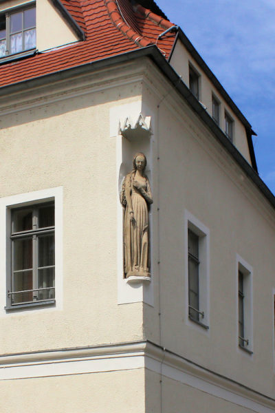 - Die Marienfigur am Wohnhaus Fleischmarkt 5 in Torgau kann besichtigt werden.