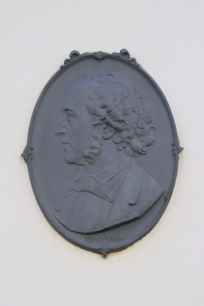 - ovales Medaillon mit Konterfei des Komponisten Felix Mendelssohn-Bartholdy.