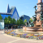 Der Mendebrunnen in Leipzig steht am Augustusplatz vor dem Gewandhaus.